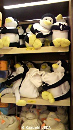 1つは、「ペンギンぐるみ付タオルホルダー」、もう1つは「ペンギン柄の靴下」です。8月は、ウルグアイでは「真冬」ですから。ウールのペンギン柄ソックスがあるわけですね(^o^)v
